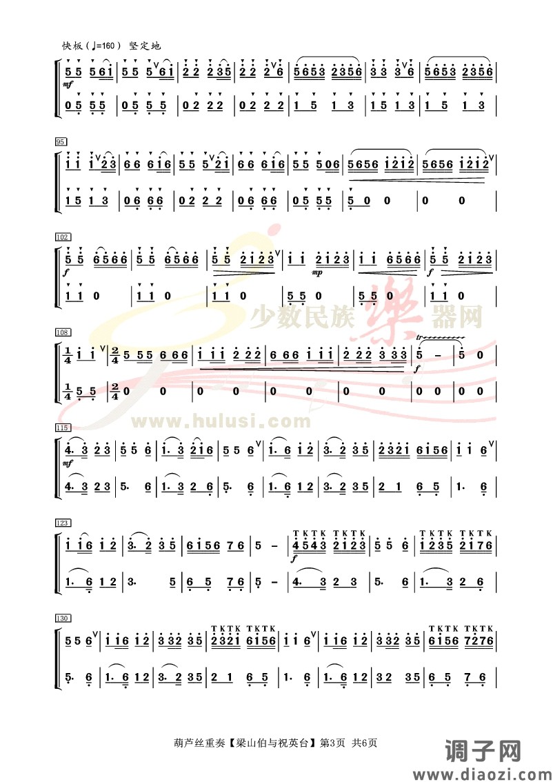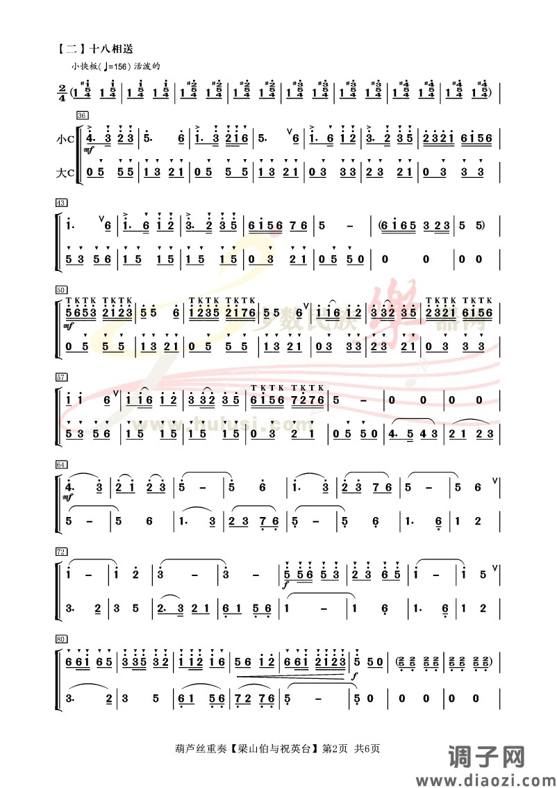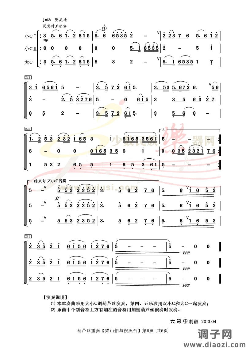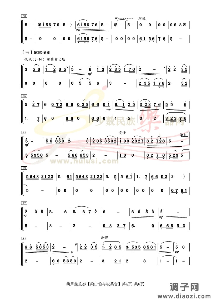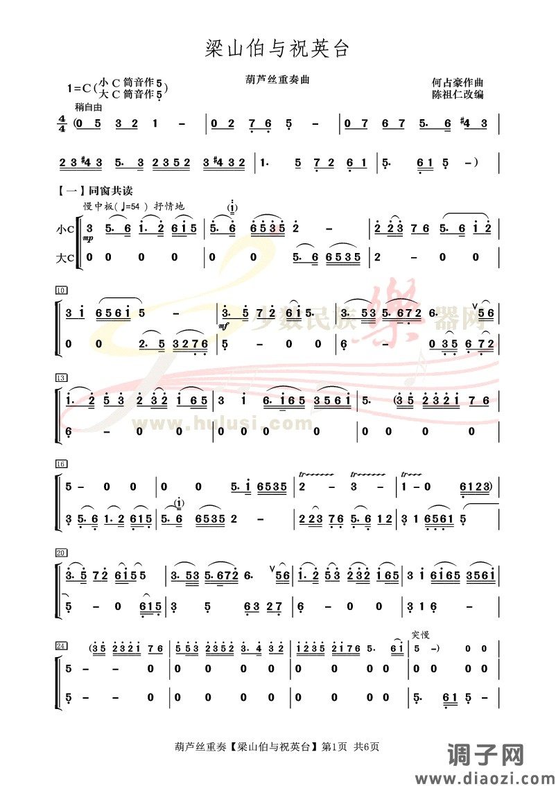 《梁祝》葫芦丝重奏曲谱