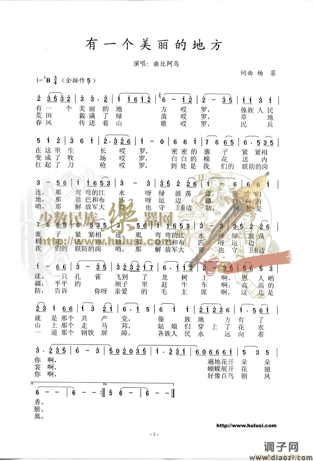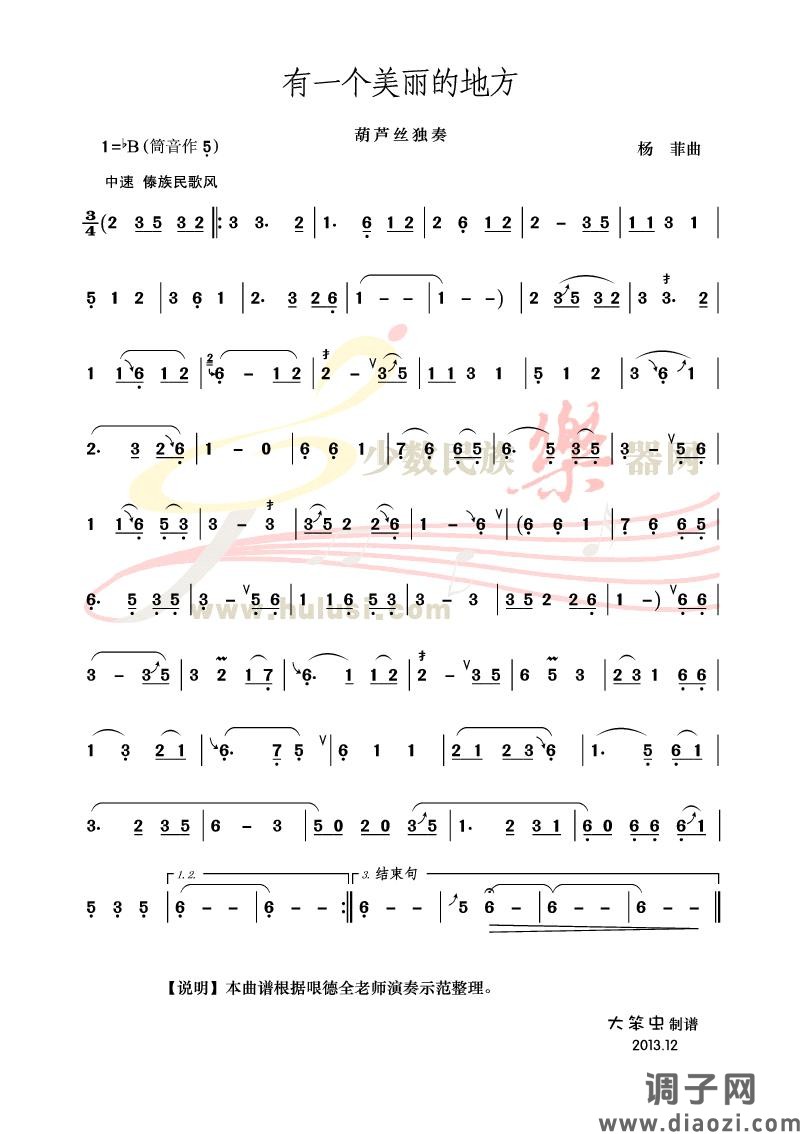《有一个美丽的地方》葫芦丝曲谱