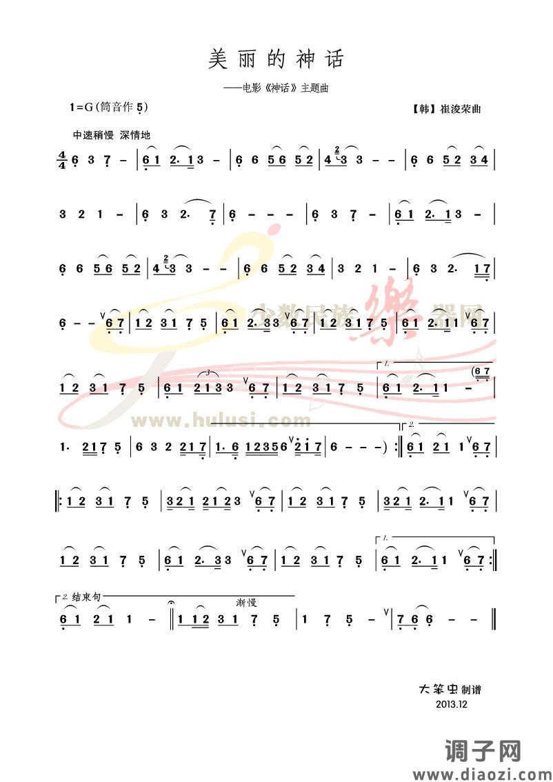 《美丽的神话》葫芦丝曲谱